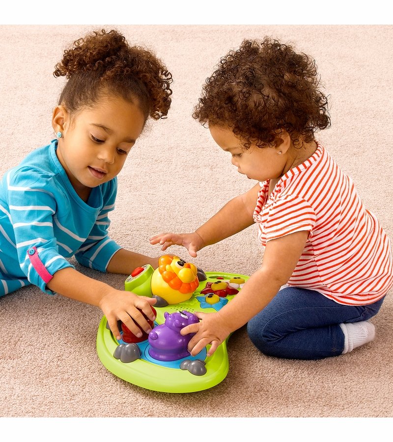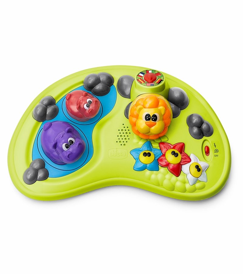 - Multi-lingual play tray can be removed and used as stand-alone toy