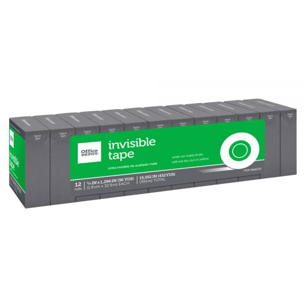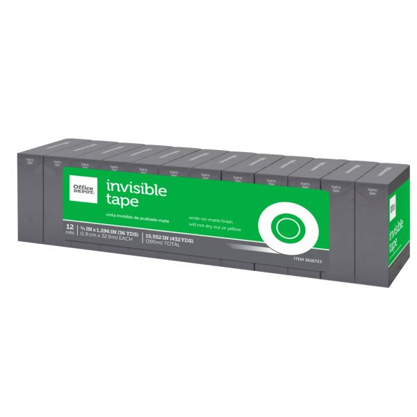 Invisible Tape, 3/4″ x 1296″, Clear, Pack of 12 Rolls – Ideal for crafting, quick fixes and mounting papers, these Office Depot brand invisible tape refills hold up to most sticking tasks.