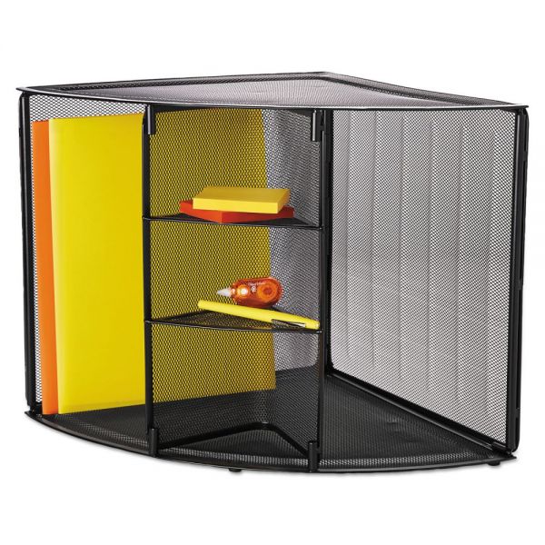 Rolodex Mesh Corner Desktop Shelf, Five Sections, 20 x 14 x 13, Black – Create extra storage space in the corner of any office or cubicle with this corner shelf. Great for storing binders, catalogs, books and more. Divider keeps contents upright. Corner shelf is made of durable rolled steel mesh.